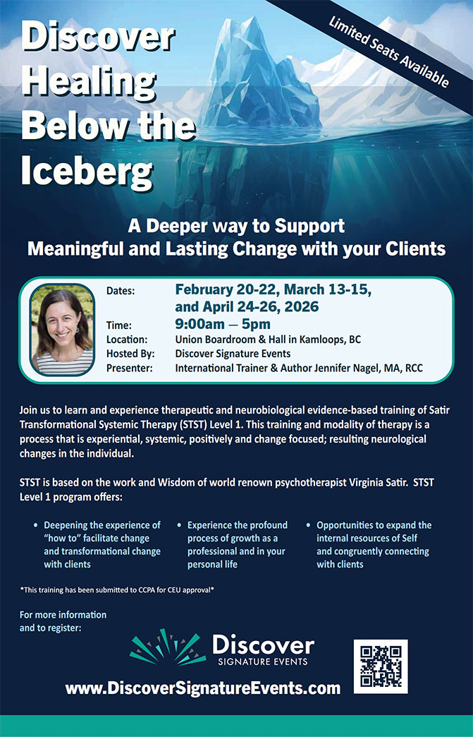 Satir Transformational Systemic Therapy (STST) Level I training program is for practicing counsellors and therapists, and for other helping professionals who are presently working with clients. The focus of the program is on learning and practicing Satir Transformational Systemic Therapy to bring about deep and lasting change with individuals, couples and families…